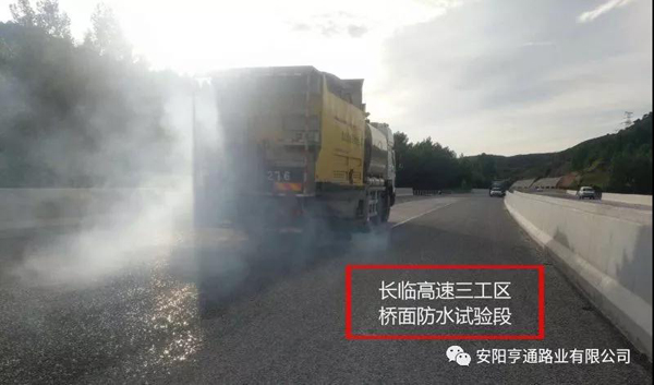 此次橋面防水試驗(yàn)段獲得了項(xiàng)目、監(jiān)理和指揮部的一致認(rèn)可,為我公司在長臨高速的防水施工奠定了一個良好的基礎(chǔ),也為亨通路業(yè)2018年的工程又傳來了一份捷報(bào)。
